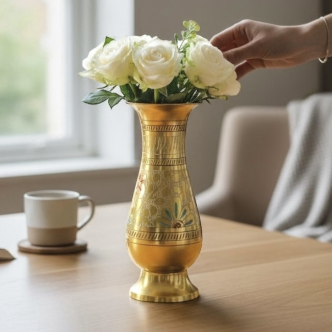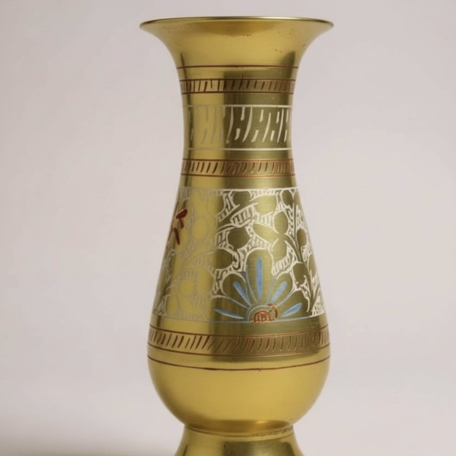 Представьте, как в интерьере появляется предмет, который притягивает взгляды и рассказывает историю многовековых ремёсел. Именно такой станет латунная ваза с гравировкой — подлинное произведение индийских мастеров.