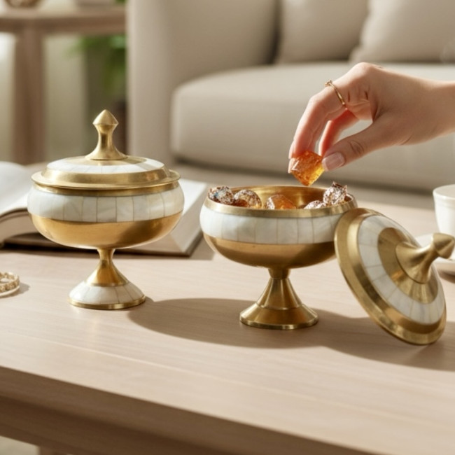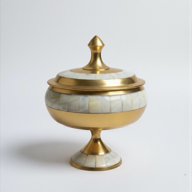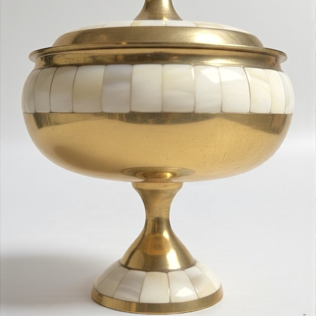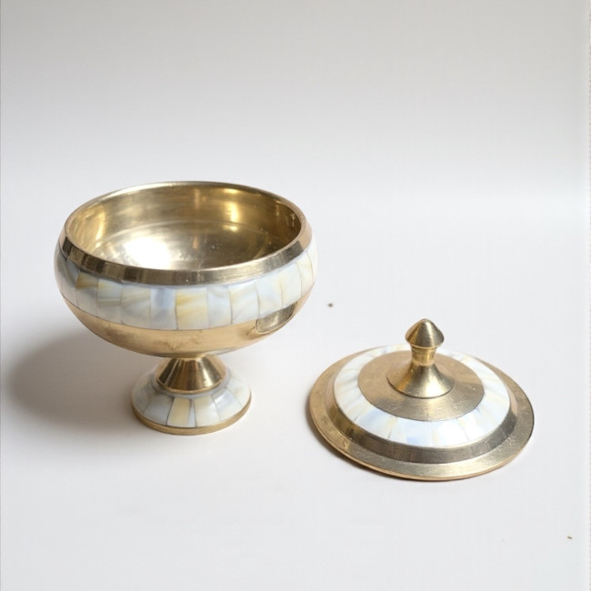 Сахарница‑конфетница из латуни с инкрустацией перламутром: восточный шарм на вашем столе.