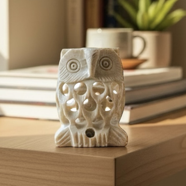 Ищете необычный подарок или стильный элемент декора? Представляем вам уникальную каменную сову ручной работы — настоящее произведение индийского ремесленного искусства!